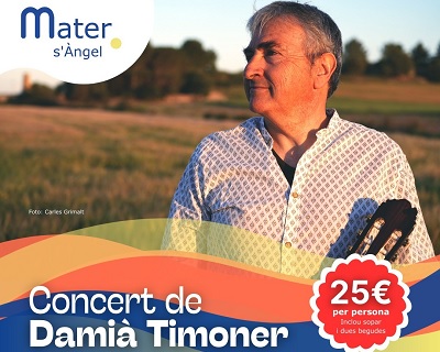 El músico de Manacor Damià Timoner dará un emotivo concierto en pequeño formato mañana miércoles día 15 de octubre de 2025 a partir de las 19:30 horas en Mater S'Àngel (Inca), si acudes solo al Concierto 8 euros, si te quedas a la fiesta y asistes a la Cena posterior en total 25 euros.