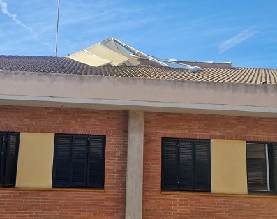 - El fuerte viento ha levantado este jueves parte de la claraboya que da luz a la entrada del centro educativo de Mitja de Mar de Porto Cristo, mañana viernes habrá clases