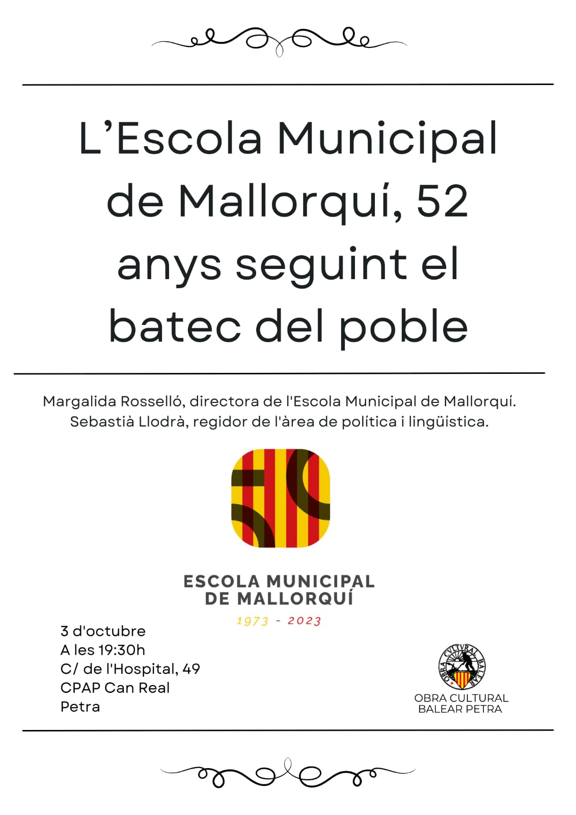 - El domingo 12 de octubre a las 19 horas en s'Agrícola Manacor recital acústico a cargo de Damià Fluxà acompañado de Maria Antònia Gomila, Toni Terrades, Carmela Font