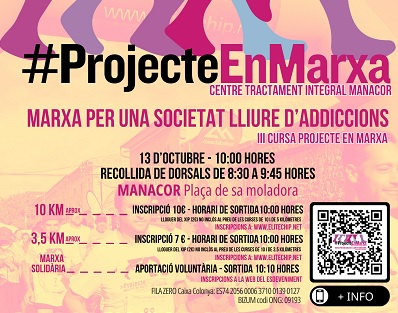 MARCHA POR UNA SOCIEDAD LIBRE DE ADICCIONES. LA 2ª CARRERA SOLIDARIA EN MANACOR A BENEFICIO DE PROJECTE HOME BALEARS TENDRÁ LUGAR EL DOMINGO 13 DE OCTUBRE. LA CARRERA SALDRÁ DESDE LA PLAZA DE “SA MOLADORA”.