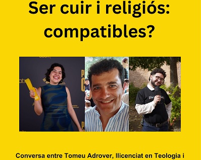 COMUNICADOS: Ser cuir i religiós: compatibles?. L'OCB de Manacor organitza una conversa entre Tomeu Adrover, llicenciat en Teologia i Filosofia, i els creadors de contingut Constança Ramis (Co.torrita) i Joan S. Moñino (Parlars Mallorquins). L'acte serà a Can Lliro el pròxim dimecres 29 d'octubre a les 20 h.