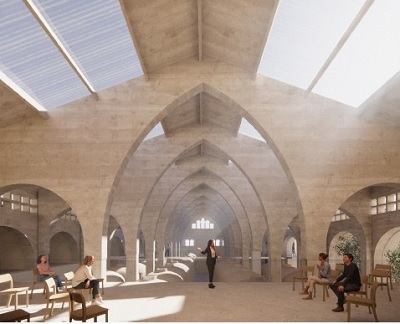 La recuperación del edificio industrial se entiende desde una perspectiva contemporánea, con nuevos usos, respetando la estructura y el valor simbólico. De esta forma, habrá espacios para la creación artística y salas de proyección, así como otros espacios para exposiciones temporales de los artistas.