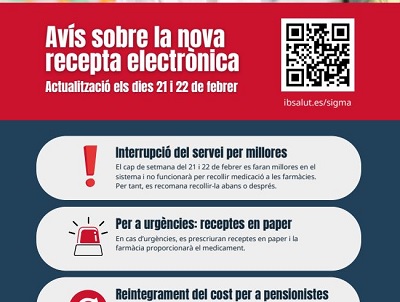 Salud balear renueva el sistema de receta electrónica: El cambio será los días 21 y 22 de febrero, durante los cuales se interrumpirá el uso de la tarjeta sanitaria y se expedirán recetas en papel