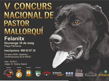 AGENCIA MANACORNOTICIAS 21/04/2026 - 09:40:10 El juez para este evento deportivo será Vicenç Gascó. Se harán registros, pruebas de ADN, confirmaciones de RSCE. Las inscripciones al número de teléfono móvil 699 93 97 35. | ![]() El próximo domingo día 10 de mayo de 2026 se celebra en la localidad de Felanitx el V Concurso Nacional del Pastor Mallorquí, la concentración es en la plaza de Las Palmeras. |